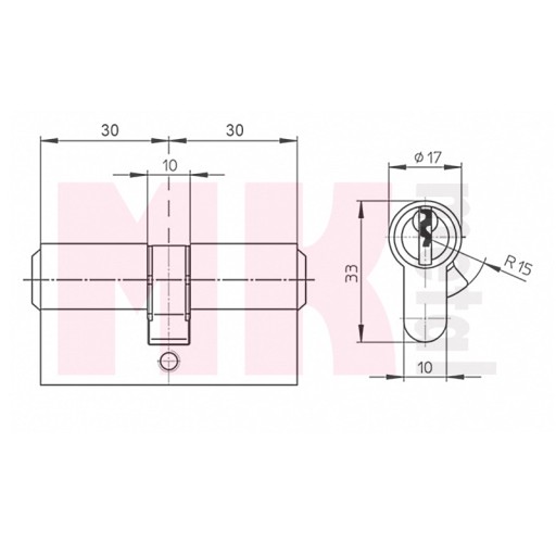 - wkładka bębenkowa - symetryczna 30/30, mosiądz, 3 klucze