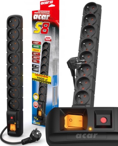Acar S8 jest podstawowym modelem z popularnej serii urządzeń zabezpieczających. Wysoka jakość została potwierdzona wieloletnim doświadczeniem polskiego producenta. Urządzenie jest przewidziane jako zabezpieczenie uniwersalne, może pełnić podstawowe funkcje ochronne zarówno systemów komputerowych (komputery stacjonarne, notebooki, monitory, drukarki, skanery itp.) jak i audiowizualnych (LCD/OLED, odtwarzacze DVD/BD, amplitunery, wzmacniacze). Nowoczesna i elegancka obudowa pozwala na umieszczenie go w dowolnym, dogodnym i widocznym miejscu (biurko, szafka), a smukła sylwetka zajmuje mało miejsca. Osiem zabezpieczonych gniazd sieciowych 230V z uziemieniem i przesłonami ochronnymi oraz automatyczny bezpiecznik wystarcza do większości zastosowań w biurze i domu.