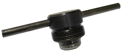 - Kalibrownik należy nakręcić na złączkę na końcówce rury, dzięki temu karb pod uszczelkę zostanie spłaszczony. W zaprasowaniu warto wspomóc się kluczem płaskim, kluczem nastawnym lub imadłem, w celu uzyskania większej siły. Dzięki pierścieniowi oporowemu nakrętka pozostanie na swoim miejscu,