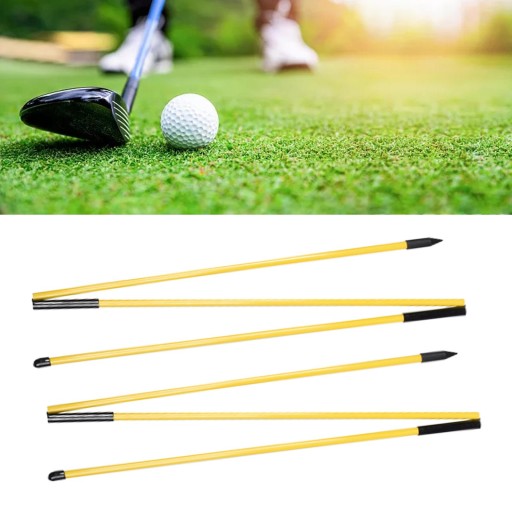 [PRAKTYCZNY PROJEKT]: Pręty wyrównujące do golfa mają spiczastą końcówkę do łatwego wbijania w ziemię i przygotowania do treningu mrugnięcia, ćwiczeń uderzania piłką i nie tylko, z gumowymi nakładkami na drugim końcu. Urządzenie treningowe wybierane przez profesjonalistów.
