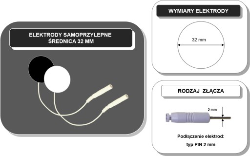 - Podłączenie elektrod: złącze typu PIN – 2 mm.