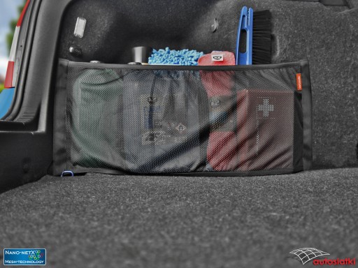 To wytrzymała siatka Nano-NetX obszyta po bokach taśmą typu rzep. Na górze i dole wykończona elastyczną gumą, która umożliwia dopasowanie siatki do przewożonych przedmiotów. Zastosowany materiał Mesh-Technology zabezpiecza przed wypadnięciem nawet niewielkie przedmioty. Płotek mocuje się do wykładziny w lub tapicerki w bagażniku auta.