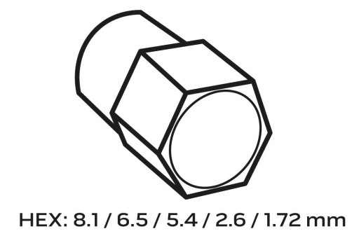 - Zakres: HEX 8.1/6.5/5.4/2.6/1.72 mm²