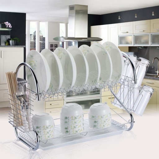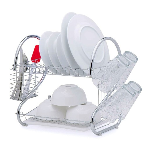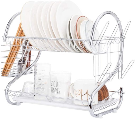 ДВУХУРОВНЕВАЯ КУХОННАЯ СУШИЛКА ДЛЯ СУШКИ ПОСУДЫ, ХРОМИРОВАННАЯ СУШКА