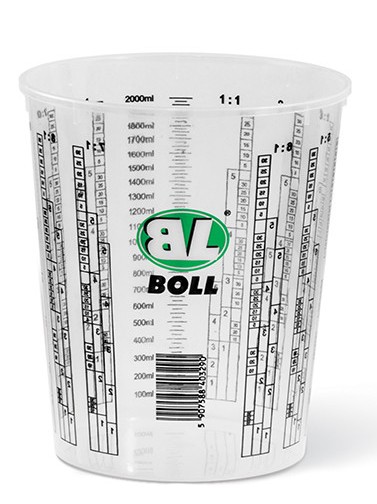 Uniwersalne pojemniki z przeźroczystego tworzywa z nadrukowaną podziałką umożliwiającą przygotowanie mieszanki w żądanej proporcji.