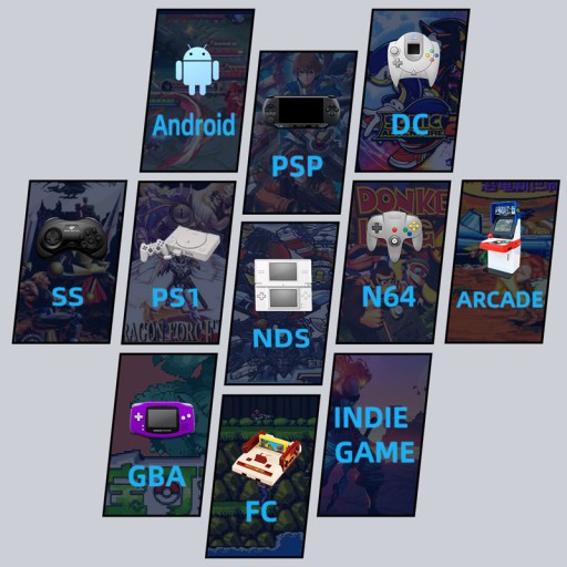 Obsługa gier: dla PSP, DC, SS, PS1, NDS, N64, CPS1, CPS2, CPS3, FBA, NEOGEO, GBA, GBC, GB, SFC, FC, MD, SMS, dla GG, MSX, PCE, WSC, N -Gage, gra niezależna itp. 20 rodzajów formatu gier.