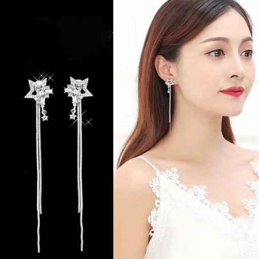 Luxury Brand Tassel Crystal Letter D Long Drop Earrings For Women Girl Fashion Earrings Statement Wedding Jewelry