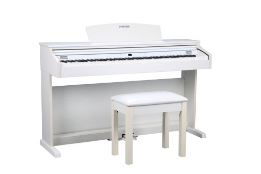 Dynatone SLP-150 to idealny instrument do Twojego salonu, który upiększy go swoim gabinetowym designem oraz wysokiej jakości brzmieniem fortepianu. Model ten jest jednym z najbardziej polecanych instrumentów na start, ze względu na swój bardzo dobry stosunek ceny do jakości, oraz fakt, iż posiada wszystko co niezbędne zarówno dla początkującego, jak i zaawansowanego pianisty. Pomimo tego iż jest to instrument gabinetowy, jego konstrukcja jest jednocześnie bardzo smukła a zarazem solidna, dzięki czemu idealnie wkomponuje się w każdy rodzaj wnętrza, a w zestawie dołączona jest pasująca ława. Model ten posiada moduł brzmieniowy Dynamic Natural Sound (DNS), który oferuje bardzo dobrą stereofoniczną próbkę fortepianu, która zaskakuje swoim naturalnym brzmieniem. Na pokładzie instrumentu znajduje się 14 różnych brzmień, które mogą być ze sobą łączone, dzielone, bądź też używane w nagraniach, które zarejestrujemy dzięki wbudowanej funkcji RECORDING. Instrument posiada klawiaturę Natural Hammer Action, która bardzo wiarygodnie odwzorowuje mechanikę klawiatury instrumentu akustycznego. Jej odpowiednie wyważenie zapewnia odczucia z gry zbliżone do tych, których doświadczamy w kontakcie z akustycznym fortepianem. Klawiatura ta zapewnia możliwość wyeksponowania dynamiki oraz ekspresji gry pianisty. Oprócz tego model SLP-150 zapewnia wiele ciekawych funkcji, takich jak łączność USB MIDI oraz USB AUDIO. Po podłączeniu instrumentu do komputera, wykonania utworów na instrumencie mogą być rejestrowane bezpośrednio do pliku .WAV, ale działa to również w drugą stronę. Po uruchomieniu wirtualnych brzmień VSTi w komputerze, instrument będąc jednocześnie sterownikiem MIDI dla tych brzmień, jest również głośnikiem dla komputera, dzięki czemu usłyszysz wirtualne brzmienia VSTi wprost z głośników swojego pianina cyfrowego! Zapomnisz wyłączyć instrumentu? Nic nie szkodzi. Po braku aktywności użytkownika przez określony czas, pianino wyłączy się automatycznie. Dwa 15 watowe głośniki zapewniają dobry odbiór brzmienia pianina, a całość zamknięta jest w bardzo solidnej konstrukcji, która jest dopełnieniem całego instrumentu.Prezentacja instrumentu: https://www.youtube.com/watch?v=6eMZWP5ibMUSpecyfikacja:Klawiatura: Natural Hammer Action, 88 klawiszy Polifonia: 64 głosy Brzmienia: 14 + 1 perkusyjne + 1 SFX Całkowita pojemność: 128mb Wyświetlacz: LED, 3-cyfrowy Utwory: 50 Efekty DSP: Reverb Pedały: Soft, Sostenuto, Damper Nagrywanie: Dwie ścieżki, jeden utwór Funkcje: Layer, Split, Twin Piano, Master Tune, Master Key-Transponse, Touch, Metronome Wejścia: Interfejs USB 1.0, USB typu B, Pedału Wyjścia: Stereo 6,35m Głośniki: 2x 15W Wymiary: 1370 x 440 x 840mm Wyposażenie: Ława