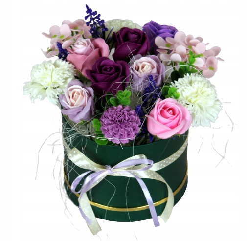 Bukiet wykonany w flower boxie , wysokiej jakości kwiatów mydlanych i dodatków sztucznych.