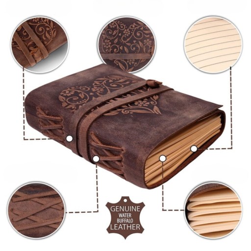 Nasz notatnik wykonany jest z ręcznie ciętej, 100% oryginalnej skóry bawolej, co gwarantuje wytrzymałość i niepowtarzalny wygląd. Zapomnij o rozczarowujących dziennikach ze sztucznej skóry – ten notatnik będzie z Tobą na zawsze.