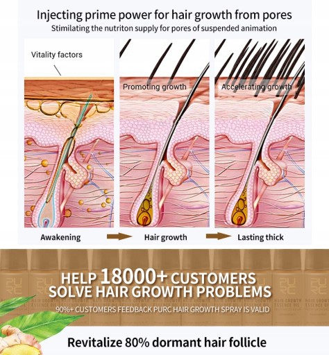 PURC Spray na porost włosów Niezbędne leczenie wypadania włosów Zapobieganie łysieniu Hodowca włosów dla mężczyzn i kobiet Skuteczny zagęszczacz włosów Pielęgnacja włosów Esencja wzrostu włosów Szybki Potężny hodowca włosów Pielęgnacja włosów 100% czystej naturalnej kuracji Leczenie wypadania włosów Włosy