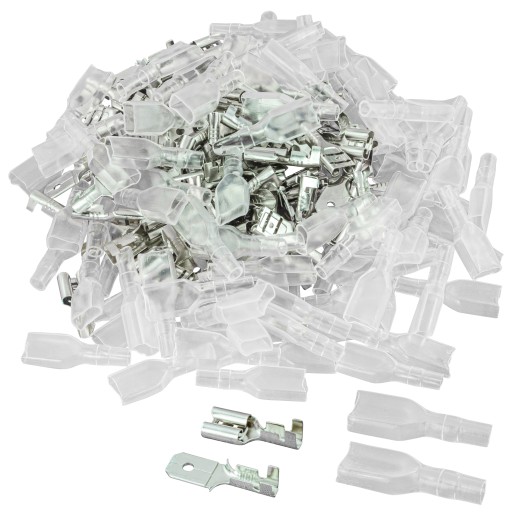 ZESTAW 200szt KONEKTORY 6.3MM ŻEŃSKIE + 6.3MM MĘSKIE + 6.3MM KOSZULKI