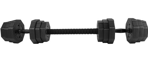 Dzięki dołączonemu do zestawu łącznikowi hantle można szybko przekształcić w sztangę. To unikalne rozwiązanie pozwala zaoszczędzić miejsce i wykorzystać w pełni obciążenie z zestawu. Zyskujemy bowiem sztangę, z którą wykonamy ćwiczenia nie możliwe lub nie wygodne do wykonania z hantlami.
