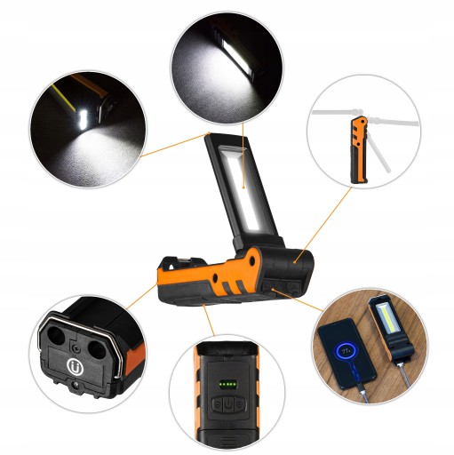 LAMPA WARSZTATOWA LED COB LATARKA Z MAGNESEM LAMPKA AKUMULATOROWA HAK USB