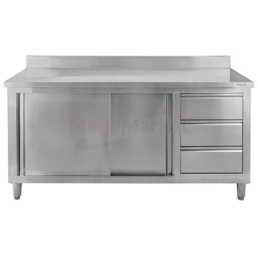 Стол ГАСТРОНОМИЧЕСКИЙ, столешница со шкафом и ящиками 180х60, нержавеющая сталь