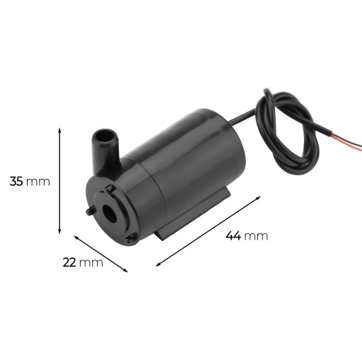 Niewielkich wymiarów pompa wody o mocy 6W, która znajdzie zastosowanie w chłodnictwie, mini fontannach, lub innych elementów dekoracyjnych lub technicznych.