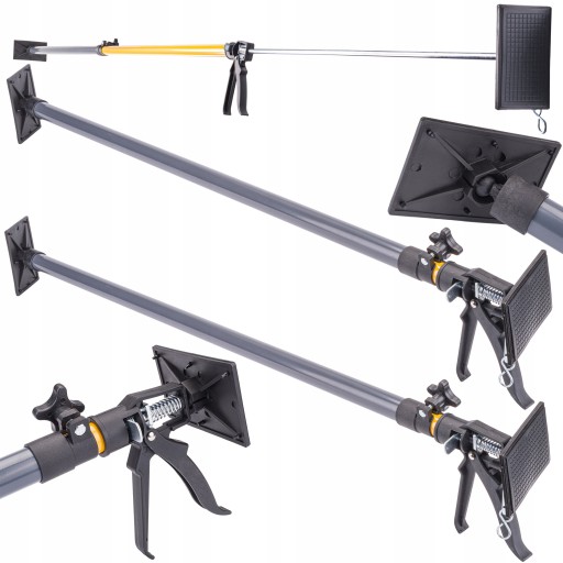 Podpora znajdzie swoje zastosowanie podczas montażu płyt sufitowych / ściennych (kartonowo-gipsowych) pod niewygodnym kątem lub przy naprawianiu powierzchni klejonych. Funkcja teleskopowa umożliwia regulację wysokości, a uchylne płyty dociskowe zapewniają stabilne zamocowanie.