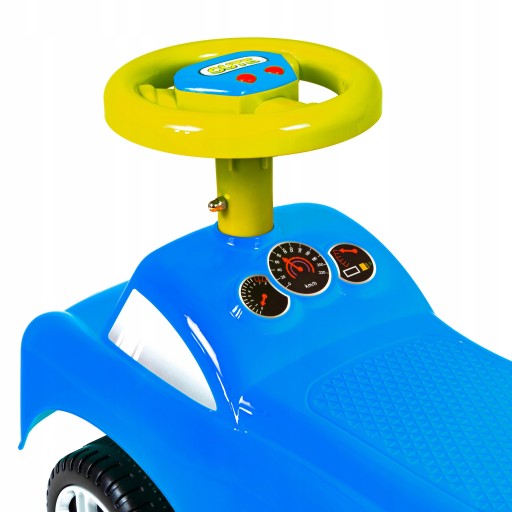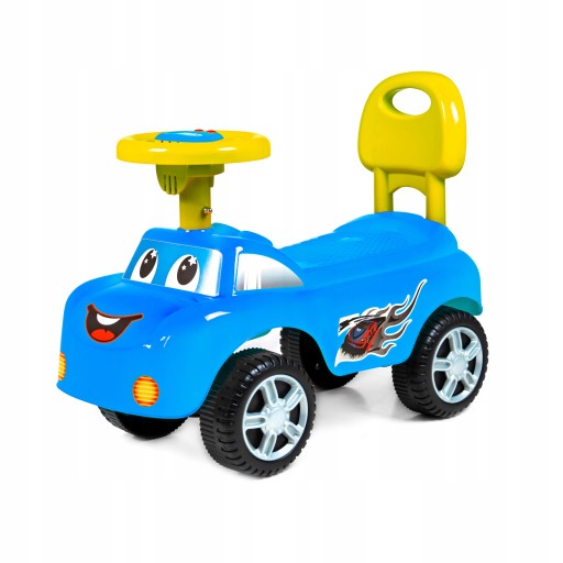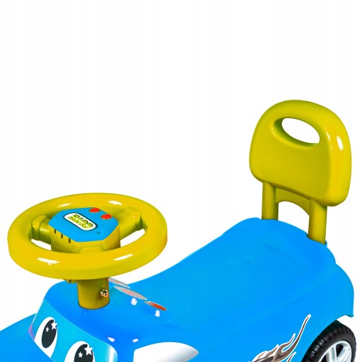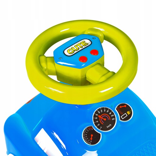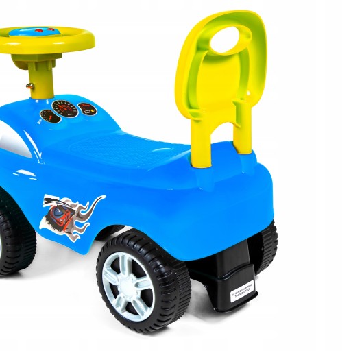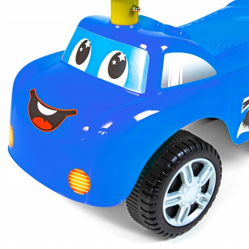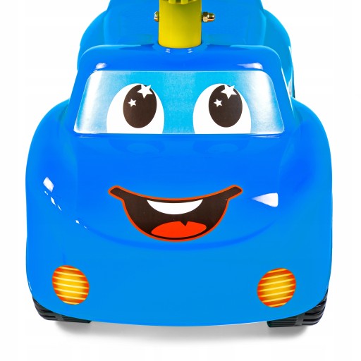 Jeździk odtwarza radosne melodyjki oraz posiada duże, skrętne koła. Dziecko może swobodnie manipulować kierownicą, a odpychając się, wzmacnia i rozwija mięśnie nóżek, co ułatwi późniejszą naukę chodzenia. Wyprofilowane siedzonko zapewni odpowiedni komfort dziecku w trakcie korzystania z produktu. Pchacz posiada w tylnej części zabezpieczenie przed wywróceniem, co daje dziecku poczucie bezpieczeństwa.