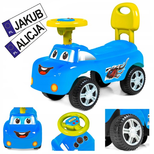 Do każdego jeździka dodajemy gratis dwie naklejki w formie tablic rejestracyjnych z podanym po zakupie imieniem dziecka.