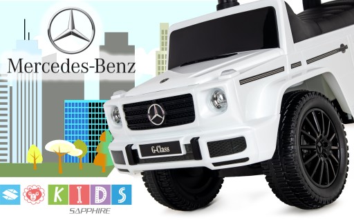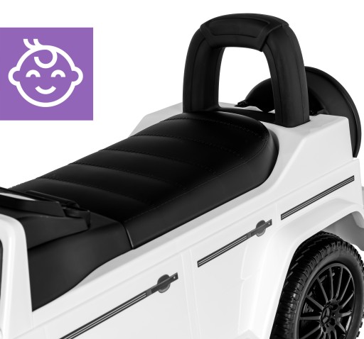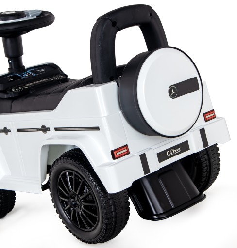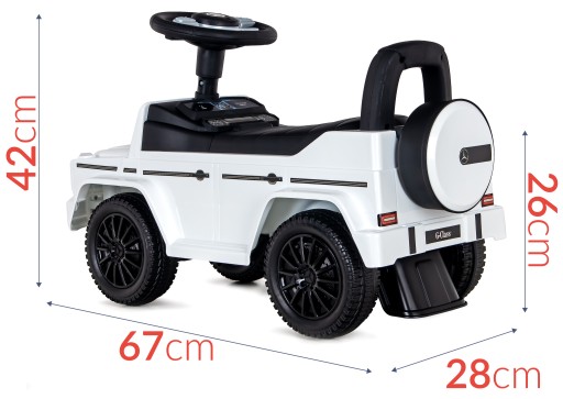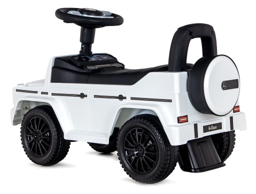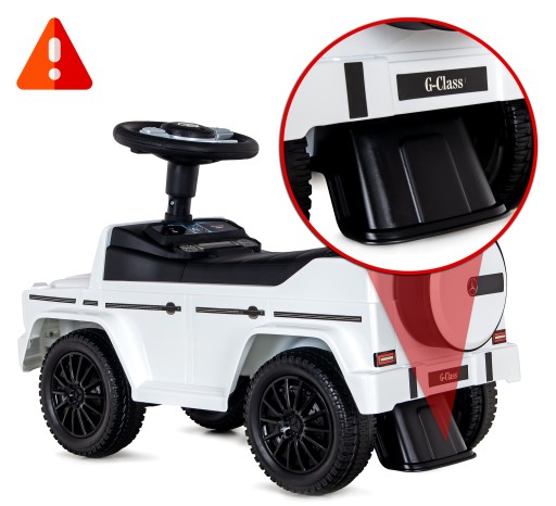 - wszystkie elementy jeździka odpowiadają tym z prawdziwego modelu G-CLASS. Wysoka jakość tworzywa jest gwarancją długoletniej bezproblemowej eksploatacji.