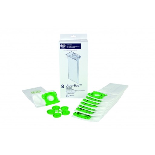 Opakowanie zawiera 8 szt. 3-warstwowych elektretowych worków filtrujących z kapslami Ultra Bag™ do odkurzaczy z serii: SEBO Automatic X, SEBO Automatic XP, SEBO Airbelt C, SEBO 370/470 Electronic, SEBO Professional G
