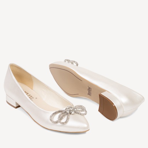 Perłowe balerinki ślubne z biżuteryjną ozdobą June ivory
