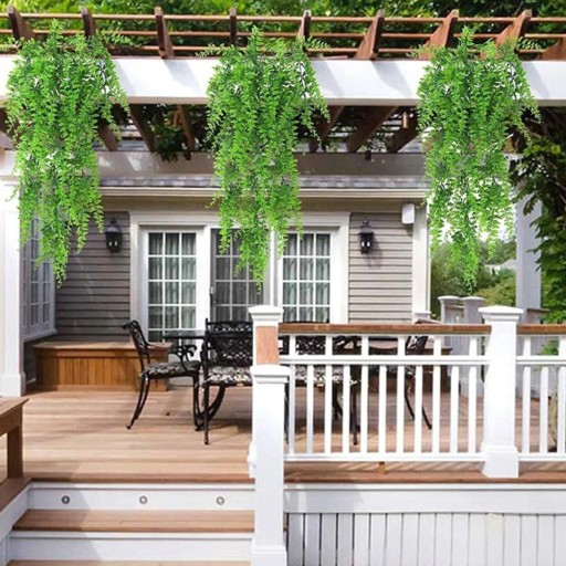 ⭕ Tworzywo sztuczne: Wisząca roślina paproci wykonana jest z tworzywa sztucznego, bardziej przyjaznego dla środowiska i substancji trwałych, może być myć wodą i nigdy nie blakną.