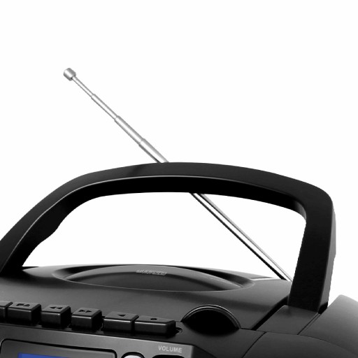 - Dodatkowo: wysuwana i obrotowa teleskopowa antena, programowanie utworów, złącze USB, wyszukiwanie i przeskakiwanie utworów dla CD, cyfrowe strojenie i wyświetlanie odbieranej częstotliwości, definiowanie 20 stacji FM,