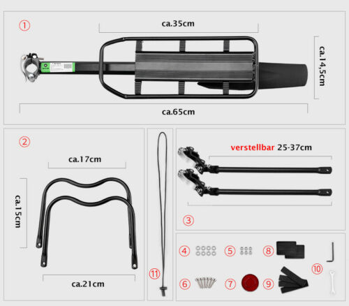 Regulowany wspornik wspornik montażowy jest regulowany w zakresie 25-37 cm. Dzięki temu bagażnik z łatwością zmieści się na rowerze.