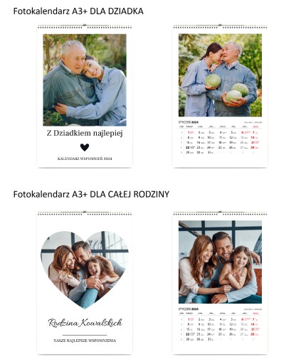 Foto kalendarz A3 z Twoimi zdjęciami - wiele szablonów