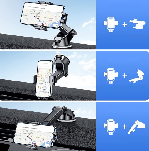 Dzięki kompaktowym rozmiarom i łatwości montażu, uchwyt KAKUSIGA KSC-759B jest idealnym rozwiązaniem do samochodu. Można go łatwo przymocować do powierzchni kokpitu oferując Ci trzy możliwości optymalnego i wygodnego korzystania z telefonu.