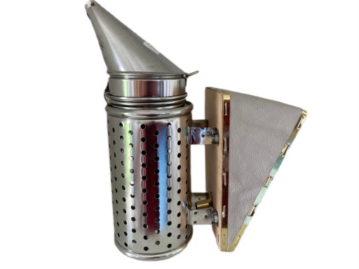 Podkurzacz wykonany z blachy ocynowanej z mieszkiem z naturalnej skóry z licem (można po pracy wytrzeć na mokro)