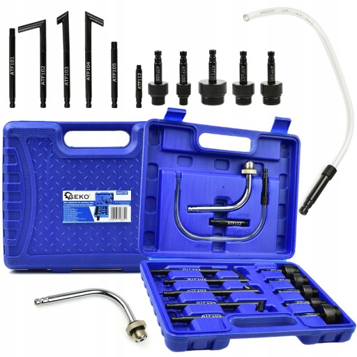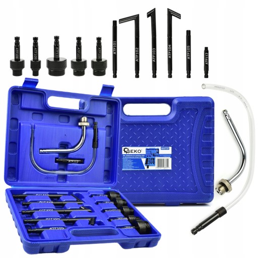 Zestaw dedykowanych adapterów do wymiany i uzupełniania oleju w automatycznych skrzyniach biegów. W skład zestawu wchodzi 13 adapterów umożliwiających obsługę skrzyni biegów najpopularniejszych marek samochodów osobowych.