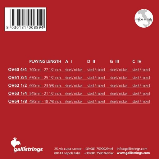 Струны для виолончели Galli OV60 4/4 - 4/4