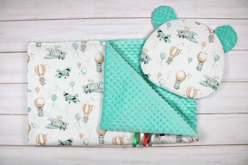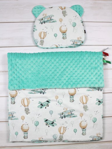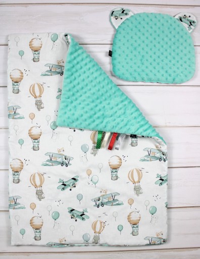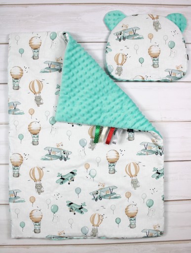 - kołderka i poduszka są dwustronne - z jednej strony bawełna z pięknym wzorem, z drugiej strony miękki w dotyku minky