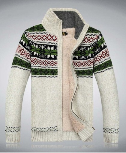 Men Velvet Sweatercoat Winter pattern style Wool Cardigan Male Casual Thicken Warm fleece Christmas Sweater for Man Hombre