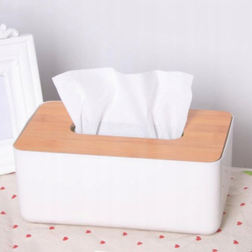 -Solidne i trwałe pudełko na chusteczki strukturze drewnianej i plastikowej do organizowania papieru.