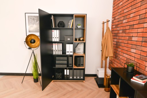 Nowoczesna czarna szafa z drewna dębowego oraz płyty z kolekcji MODERN OFFICE