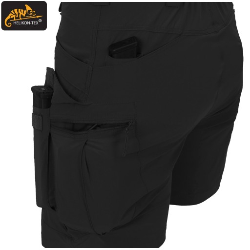 Mimo że, jest to najkrótsza wersja to spodenki zachowały swoją funkcjonalność i wszystkie możliwości przenoszenia dodatkowego sprzętu. Krój posiada dwie klasyczne kieszenie biodrowe ze wzmocnionymi krawędziami, dwie otwarte kieszenie z tyłu, zapinane na rzep kieszenie z przodu oraz dwie, zapinane na zamek kieszenie udowe. Przednie kieszenie zapinane na rzep z łatwością pomieszczą nie tylko większość dostępnych na rynku smartfonów, ale także są na tyle duże, że zmieści się w nich także magazynek od AR15. Te spodnie to idealny wybór na gorące dni na szlaku, strzelnicy itp.