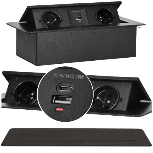 GNIAZDO WPUSZCZANE CHOWANE W BLAT Z ŁADOWARKĄ USB-C + USB-A