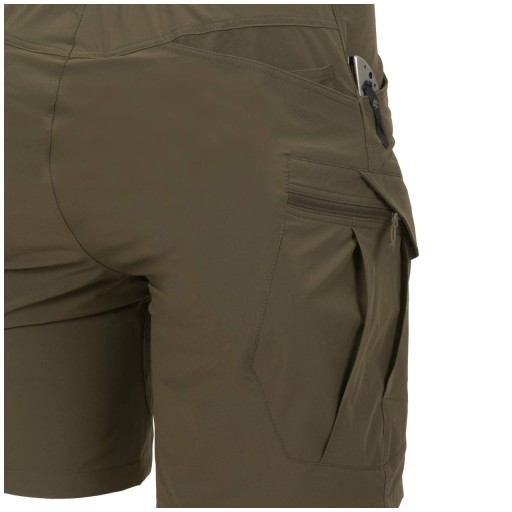 Mimo że, jest to najkrótsza wersja to spodenki zachowały swoją funkcjonalność i wszystkie możliwości przenoszenia dodatkowego sprzętu. Krój posiada dwie klasyczne kieszenie biodrowe ze wzmocnionymi krawędziami, dwie otwarte kieszenie z tyłu, zapinane na rzep kieszenie z przodu oraz dwie, zapinane na zamek kieszenie udowe. Przednie kieszenie zapinane na rzep z łatwością pomieszczą nie tylko większość dostępnych na rynku smartfonów, ale także są na tyle duże, że zmieści się w nich także magazynek od AR15. Te spodnie to idealny wybór na gorące dni na szlaku, strzelnicy itp.
