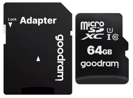 - Karta pamięci 64GB microSD z adapterem klass 10 Goodram