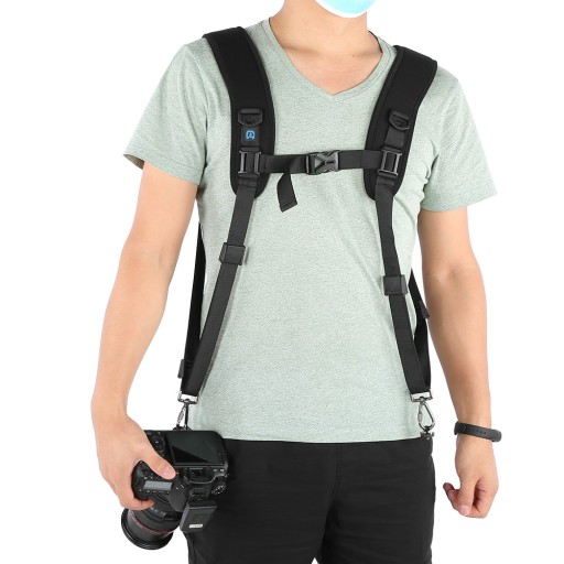 Szelki są wyposażone w standardową śrubę 1/4 cala, co gwarantuje kompatybilność z większością lustrzanek cyfrowych. Co więcej, nasze szelki umożliwiają noszenie dwóch aparatów jednocześnie i szybkie przełączanie się między nimi, a także szybkie sięgnięcie do aparatu i zrobienie zdjęcia, podczas gdy poduszka naramienna pozostaje w tej samej pozycji. Bez względu na to, czy jesteś profesjonalistą, czy amatorem, te szelki są doskonałym wyborem dla każdego.