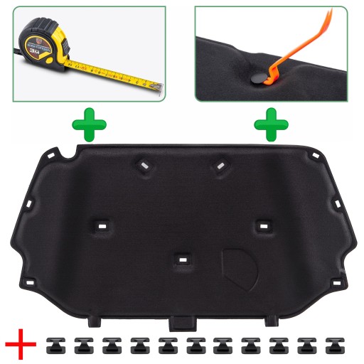 - W komplecie znajdują się: wygłuszenie maski oraz spinki mocujące