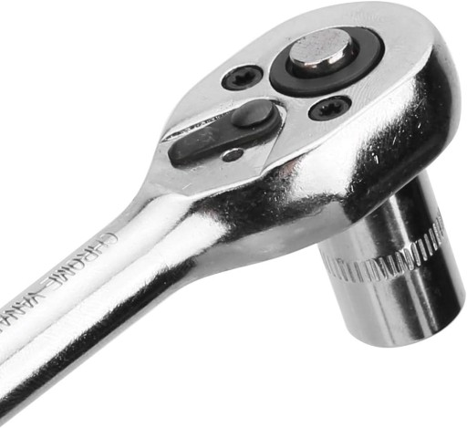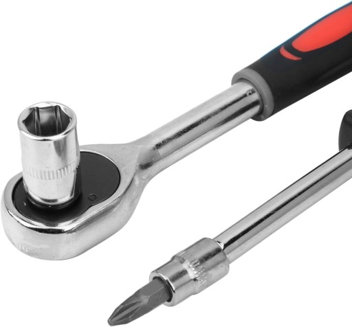 Grzechotka idealnie dopasowana do kluczy nasadowych i narzędzi. Posiada zatrzask kulowy, który pełni ważną funkcję bezpieczeństwa podczas prac montażowych, ponieważ zapewnia pewne osadzenie kluczy nasadowych oraz osprzętu