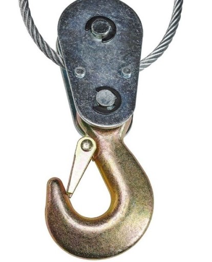 ✅Produkt wyposażony jest w nieskręcającą się linę stalową (6 mm) o długości 3,3 metra oraz w koło pasowe z hakiem ładunkowym, który posiada listwę zabezpieczającą.