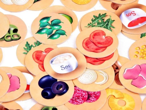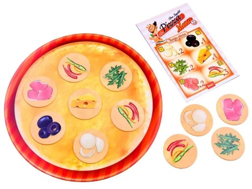 Przedstawiona gra zawiera cztery plansze (blaty pizzy), na których należy ułożyć składniki, zgodne z wcześniej wylosowanym menu. W każdym menu, umieszczonych jest sześć składników pizzy. Wśród wszystkich składników, znajdują się dodatkowo: oliwa i dwa rodzaje sosów.