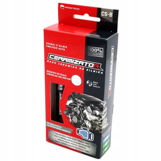 Wykorzystanie mikrocząsteczek pozwala znacząco zredukować tarcie pomiędzy podzespołami, a także zapewnić im ochronę w czasie pracy silnika, eliminując tym samym proces ich zużycia. Regularne zastosowanie środka pielęgnacyjnego wydłuży żywotność jednostki napędowej. CERAMIZATOR CS-B do silników benzynowych zapewnia ochronę na 100 000 KM.