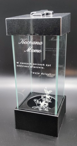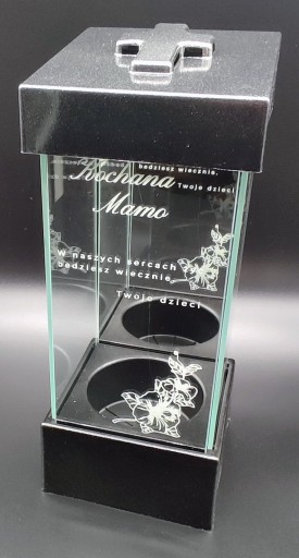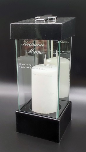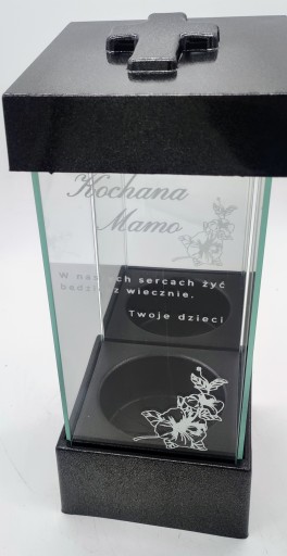 Piękny znicz całoroczny w kształcie wieży , kolumny / ZNICZ PERSONALIZOWANY TRWAŁĄ METODĄ GRAWEROWANIA SZKŁA