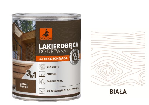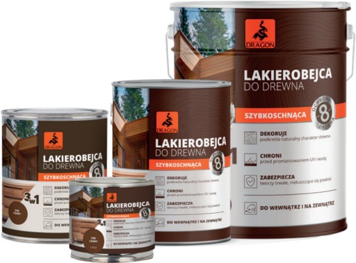 - Szybkoschnąca lakierobejca Dragon to wysokiej jakości produkt ochronno – dekoracyjny do zabezpieczenia drewna zarówno wewnątrz pomieszczeń jak i na zewnątrz. Dzięki zaawansowanej formule 3 w 1 idealnie sprawdzi się jako produkt, który impregnuje drewno, nadaje kolor i chroni na lata